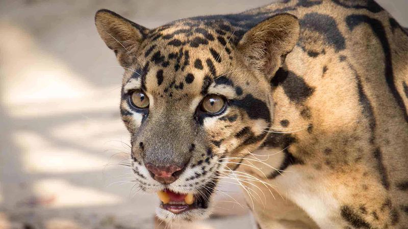 Clouded leopards are adept climbers, using their long tails for balance. They can climb down trees headfirst, a skill few cats possess. Their broad paws and sharp claws help them navigate the canopy with ease.