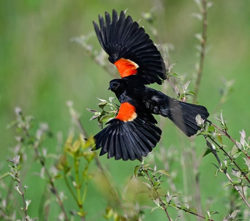 As fierce as they sound, the Red-winged Blackbirds are like little marsh warriors. Males flash their red and yellow shoulders as a bold warning to intruders. They have a distinctive, raspy call that echoes through wetlands. Often seen swaying atop cattails, these birds add drama to the peaceful marshland scenery with their audacious presence.