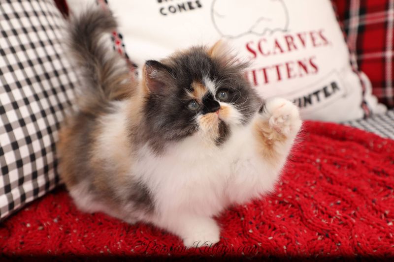 Calico Persians are a living canvas of black, orange, and white patches. This vivid pattern is as lively as their spirited personalities.