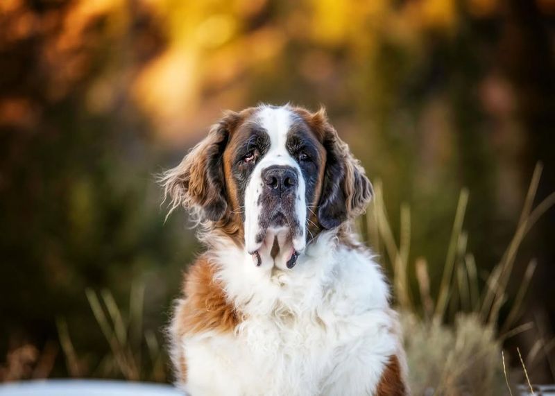Saint Bernards are gentle giants with a legacy of saving lives in the Swiss Alps. Their kind eyes and massive frames are complemented by their loving nature.