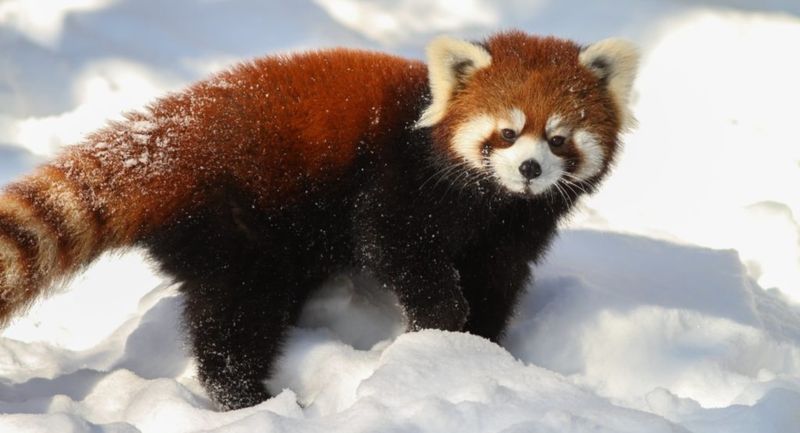 Thick fur and a dense undercoat help red pandas brave high-altitude winters. Their furry soles provide perfect insulation against snow, while their bushy tails double as cozy blankets during cold mountain nights.