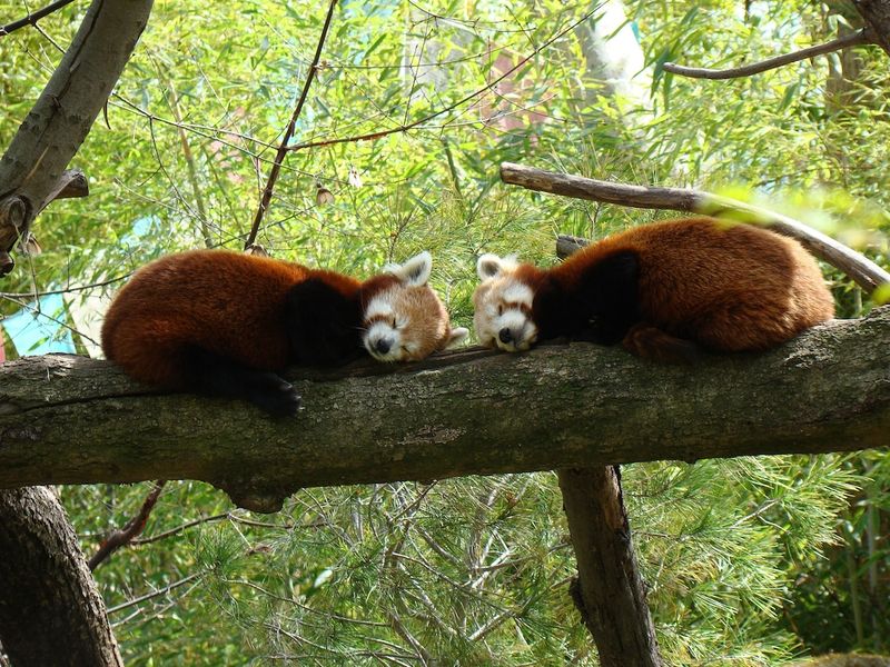 Crepuscular creatures by nature, red pandas become most active during dawn and dusk. They spend about 45% of their day snoozing in tree branches, curled up with their tails wrapped around themselves for warmth.