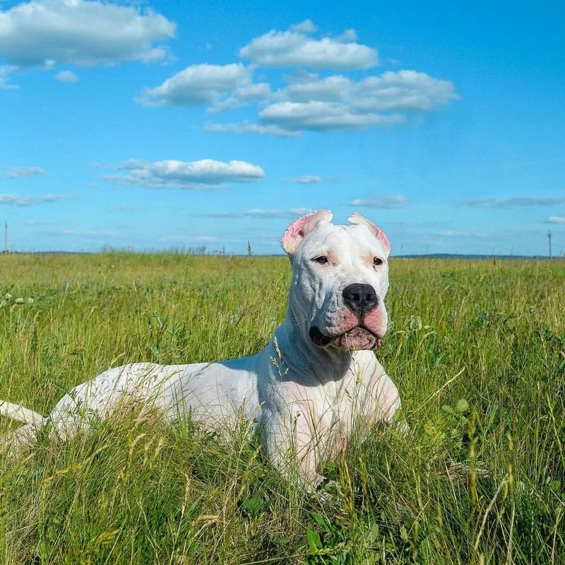 Dogo Argentinos are muscular dogs originally bred for big-game hunting. They are loyal and protective, often forming strong bonds with their families.
