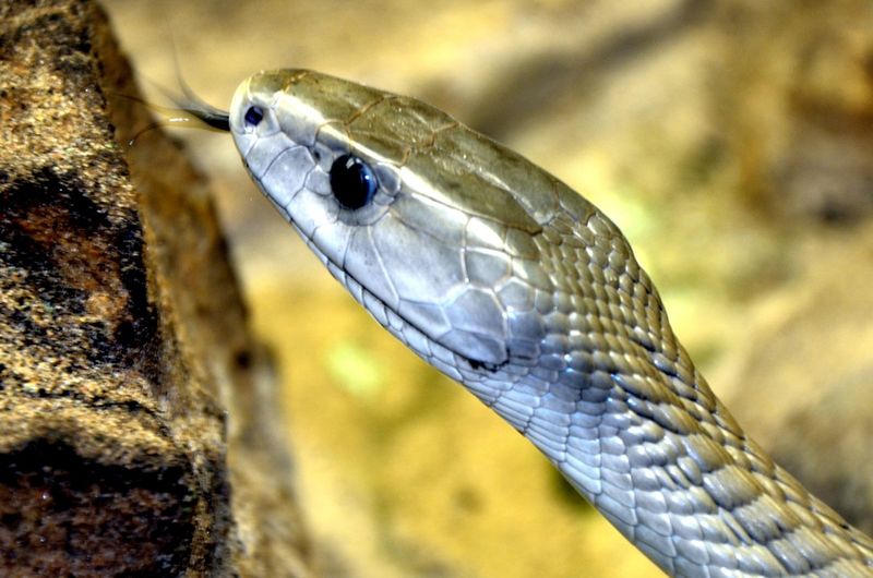 Hunting with deadly precision, black mambas track prey using heat-sensing abilities and exceptional vision. One strike is usually enough to immobilize a victim within minutes.