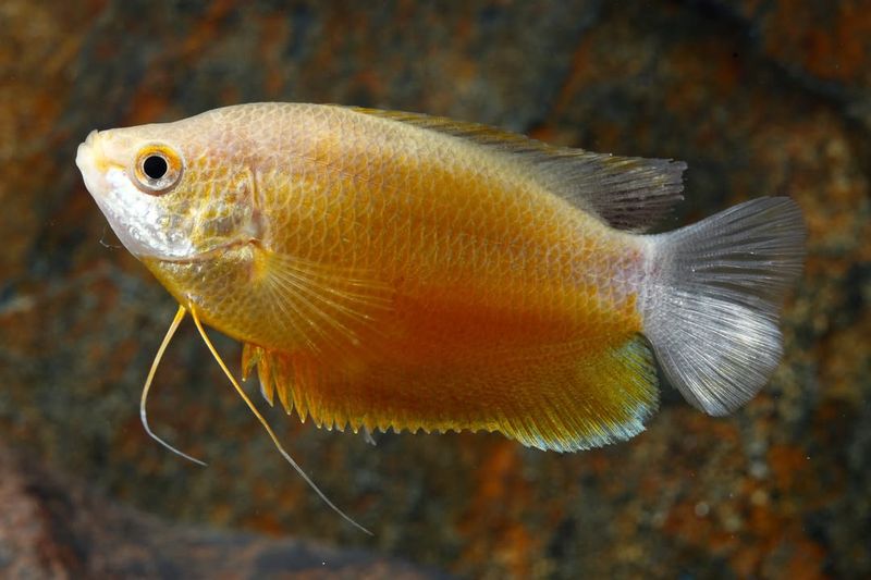 Gouramis are the elegant models of the fish world, strutting their colorful scales with grace. Picture them gliding through the water like floating jewels.