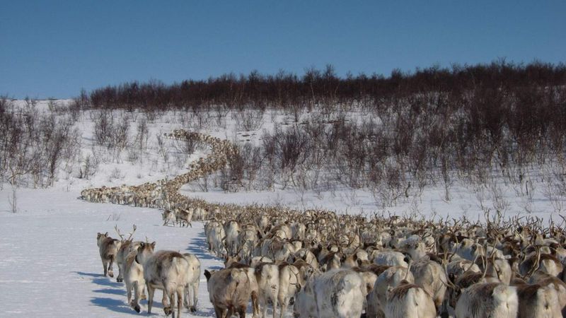 Norway’s reindeer herds cross frozen rivers and mountain passes during their 3,000-mile annual migration circle. Their specialized hooves expand in summer for walking on soft tundra and contract in winter to grip ice – nature’s perfect adaptable footwear!