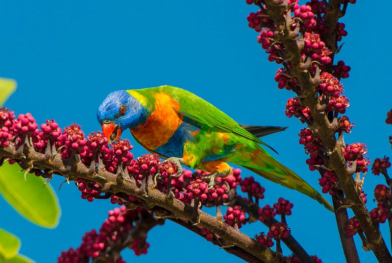 The Rainbow Lorikeet is a flying burst of color! With feathers that look like a painter’s brush strokes, these birds bring vibrancy to eucalyptus forests. Their diet of nectar and fruit adds to their energetic persona, making them the life of the avian party. A rainbow in flight!