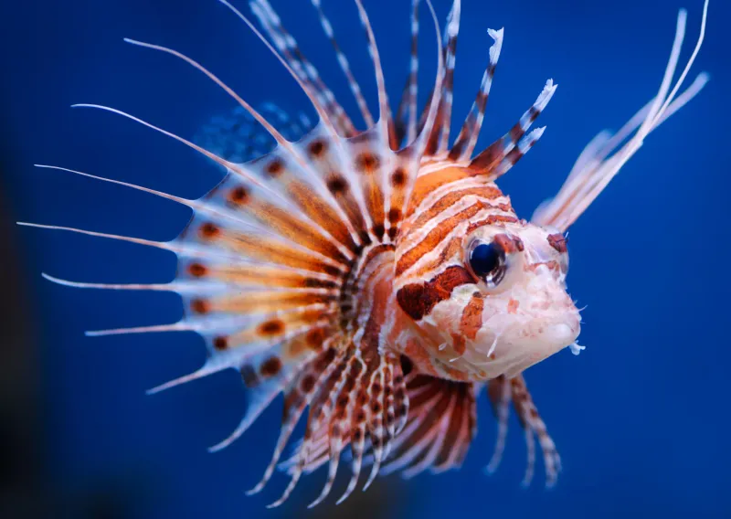 The Lionfish is the ocean’s fashion-forward predator. With its striking striped fins and venomous spines, it’s both beautiful and formidable. Native to the Indo-Pacific, these fish glide through the water with a grace that belies their predatory nature. A true underwater marvel.