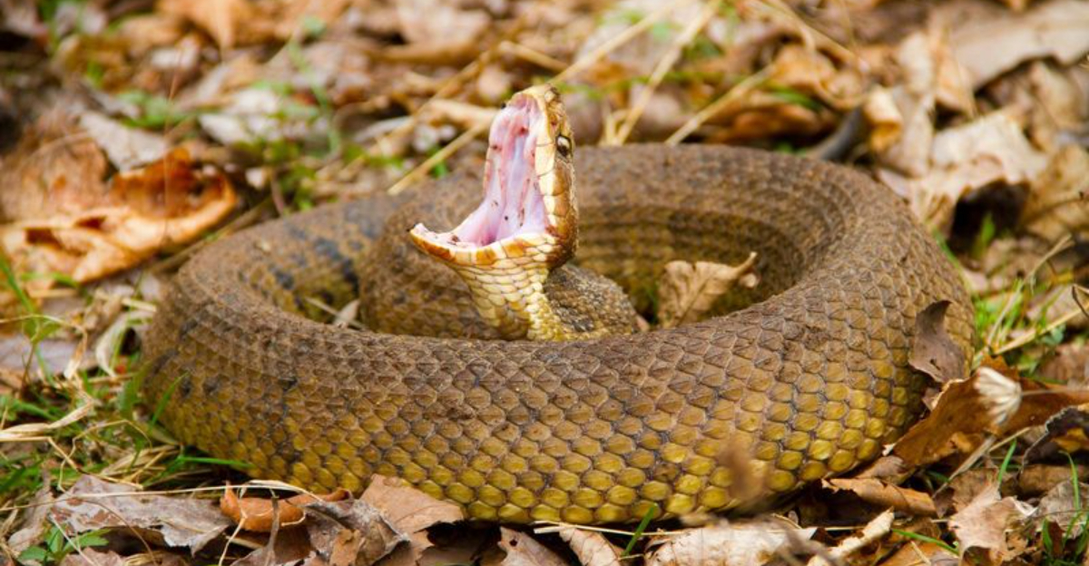 Gliding through southern swamps, the Cottonmouth earned its name from the startling white interior of its mouth, displayed as a warning. Unlike many snakes that flee from humans, these bold reptiles often stand their ground.
