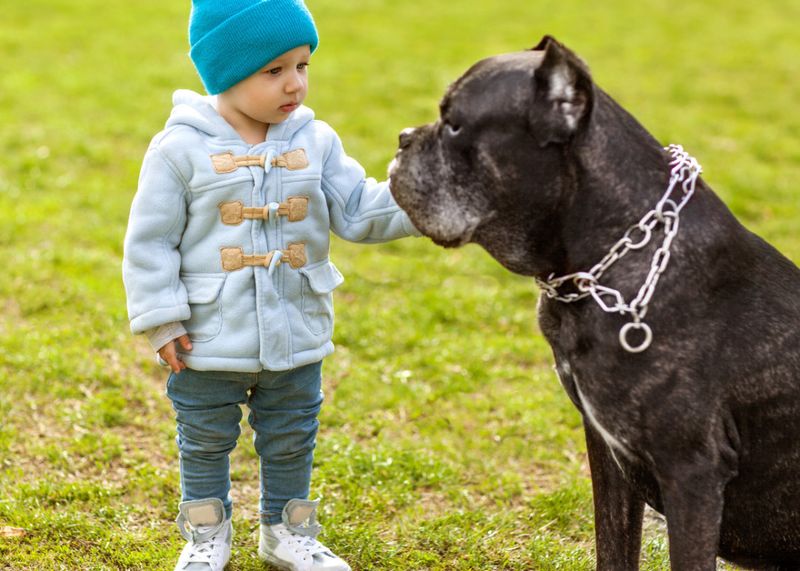 Around family, these giants transform into oversized teddy bears. They’re famously good with children, showing remarkable patience and gentleness. Many Bullmastiff owners report their dogs seeking out the smallest family member to protect, following toddlers around with touching devotion.