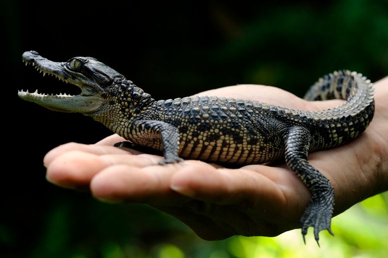 Unlike aggressive saltwater crocs, Siamese crocodiles rarely attack humans and prefer to flee when startled.