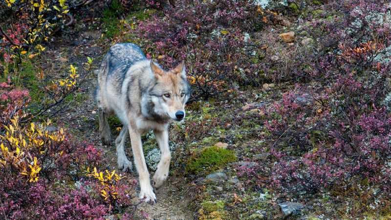 Venture into Alaska’s wild side at Denali, where wolves continue their ancient dance with nature. The rugged terrain offers a stunning backdrop for witnessing these creatures in action.