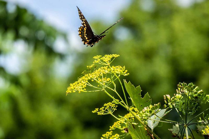 Creating a swallowtail nursery starts with planting their favorite foods in sunny locations. For black swallowtails, include dill, fennel, parsley and rue – planting extras ensures enough for both your kitchen and hungry caterpillars!