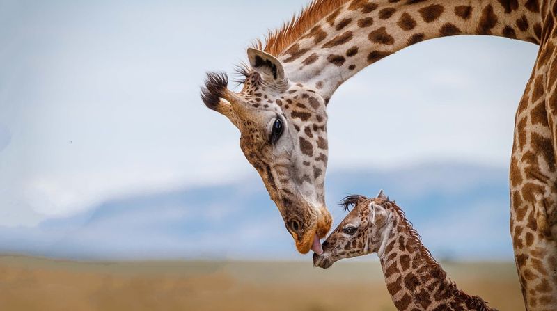 When resting, giraffes often lay their heads on each other’s bodies – a touching display of companionship. Their gentle eyes, fringed with extraordinary eyelashes, seem to reflect a calm wisdom. Despite their massive size, they move with graceful gentleness, carefully navigating around smaller creatures without causing harm.